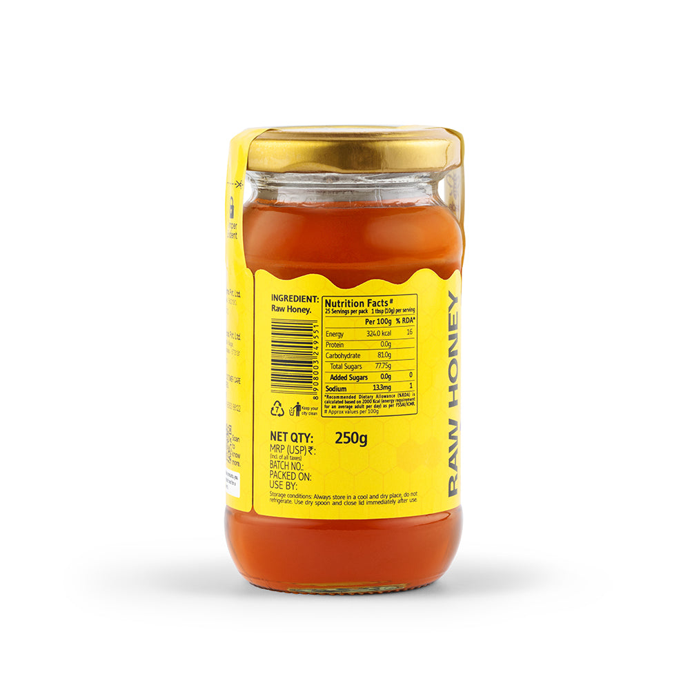 100% unprocessed, raw multifloral honey.